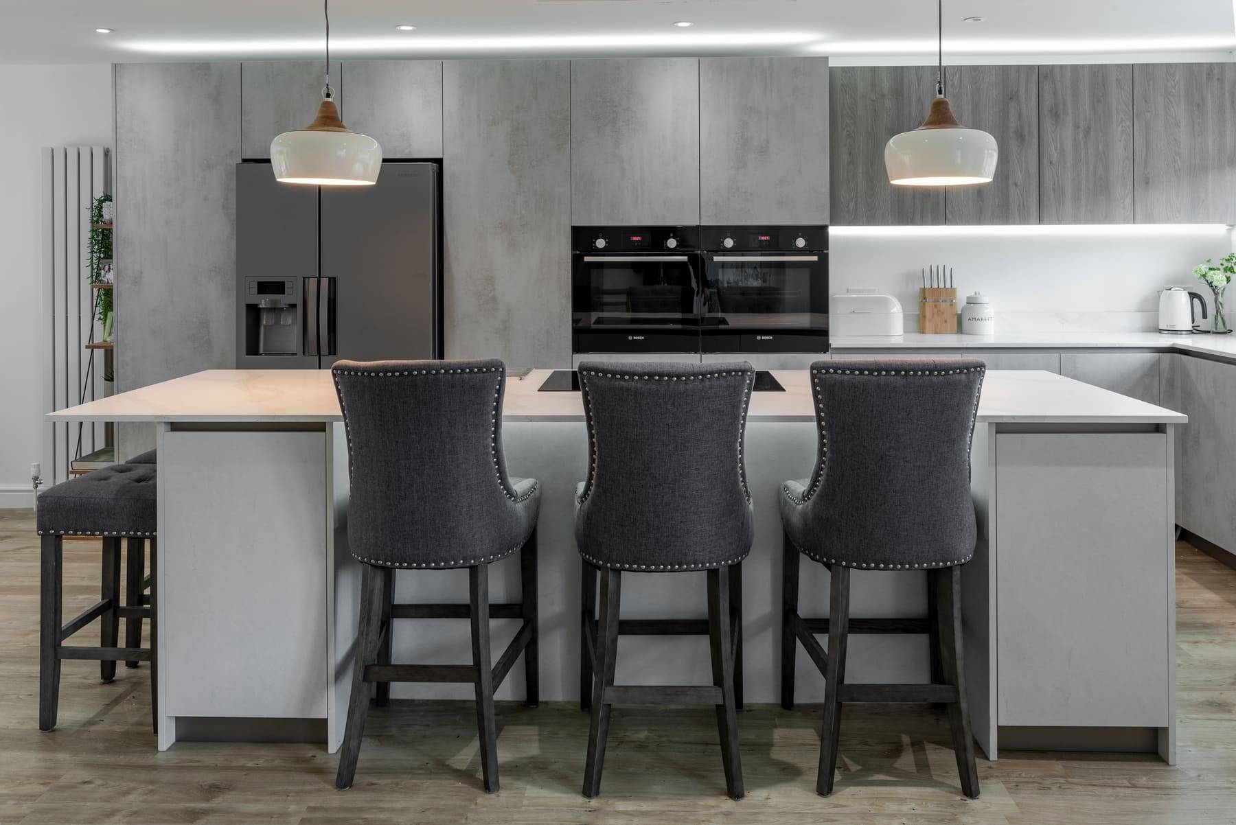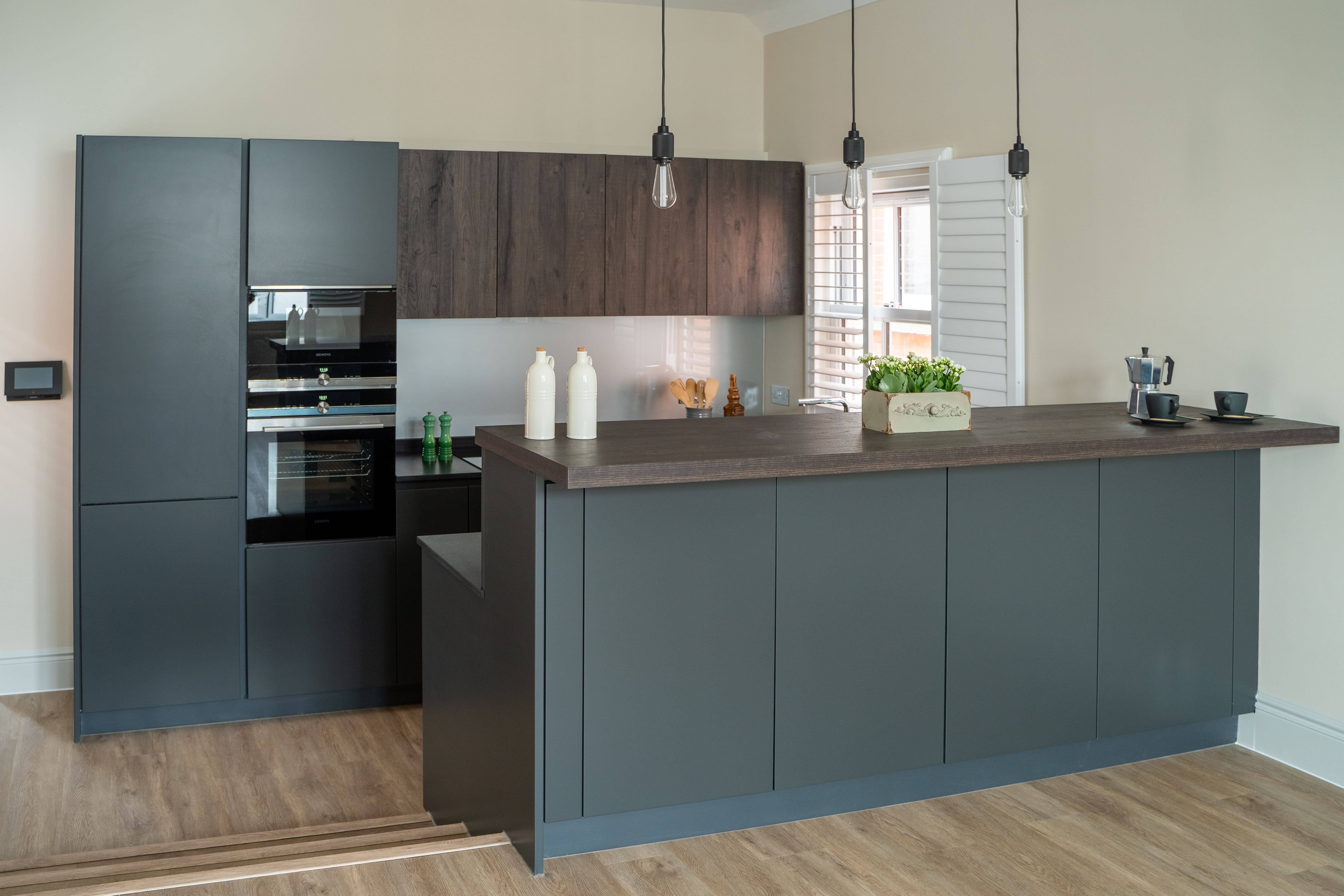 Its versatility as a shade means grey kitchen doors pair beautifully with a wide array of textures and materials. Metallic fixtures, whether gold, brass, or chrome, pop against a dark gray backdrop, introducing a lavish kitchen touch that’s hard to ignore. Additionally, luxe appliances in stainless steel or black find their perfect counterpart in dark gray cabinetry or walls, creating a harmonious yet striking kitchen environment.