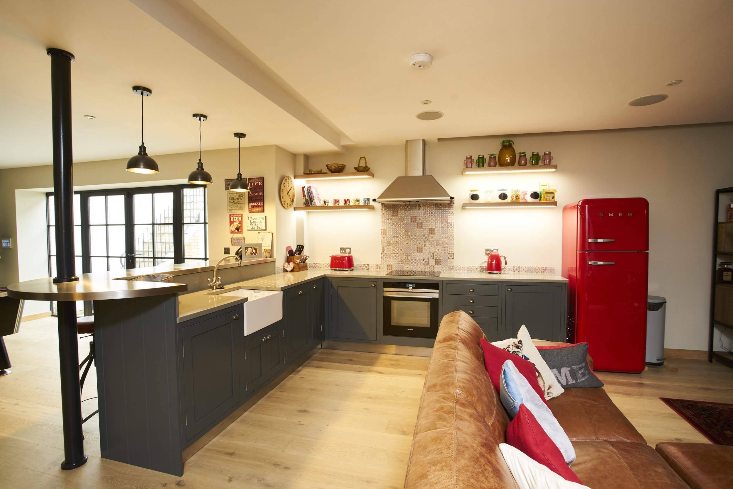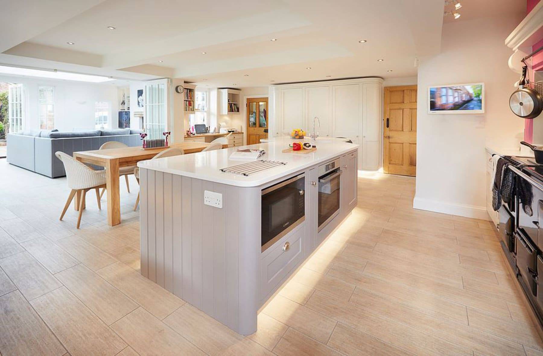 Space permitting, an open plan kitchen with an island or kitchen peninsula is one of the most desirable features for an open-plan space. Aesthetic benefits include a luxurious look and feel, but there are many practical advantages too: –
