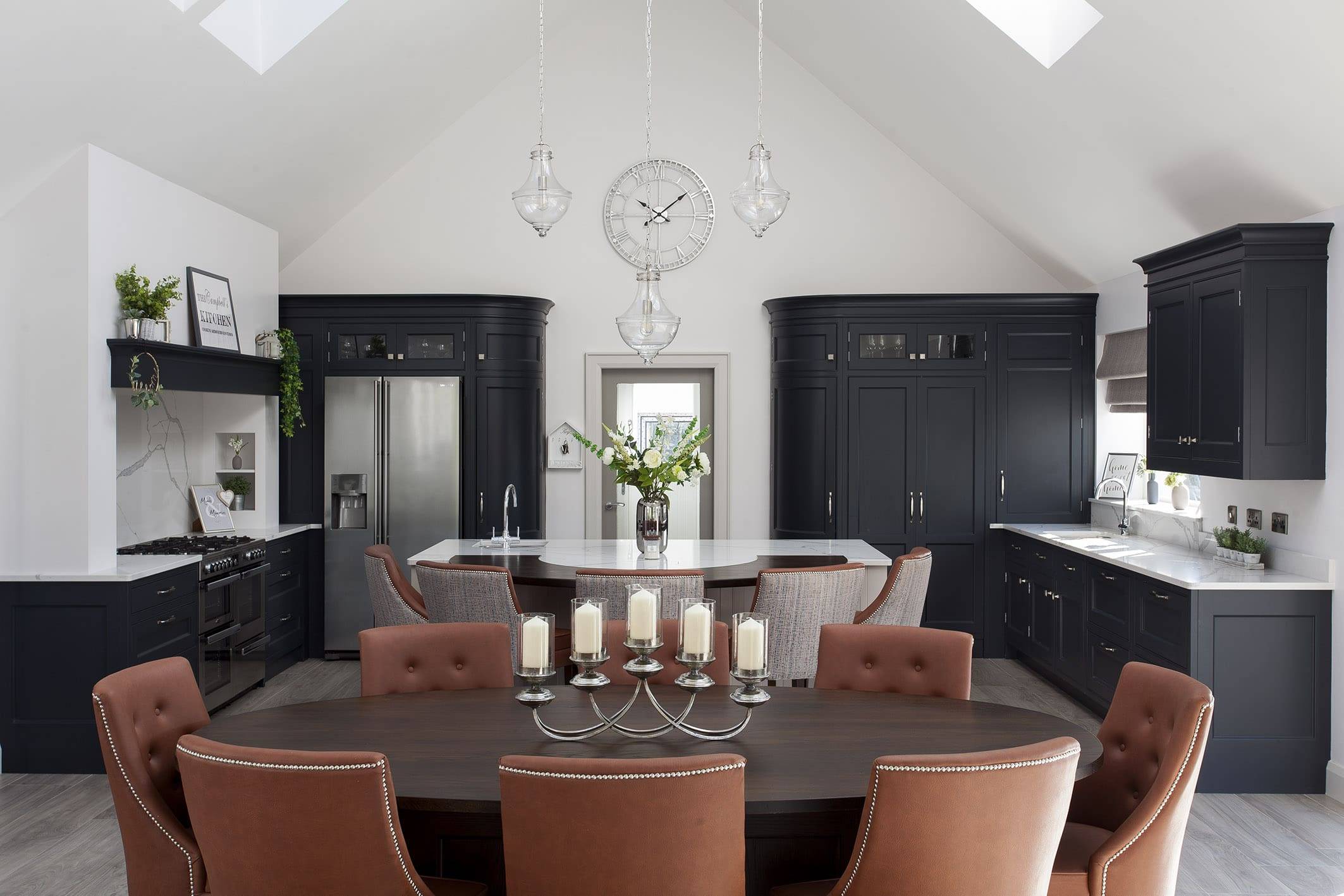 Space-dependent, we often start designing U-shaped kitchens by choosing a standout feature for the room, maybe an extra wide induction hob or statement extractor fan. This key element is then strategically positioned at the mid-point along the main run of the kitchen. From here, we can design outwards, often employing symmetry and wide drawer units to enhance the visual perception/illusion of width. As always, we are aiming to ensure that the kitchen design is both functional and aesthetically pleasing.