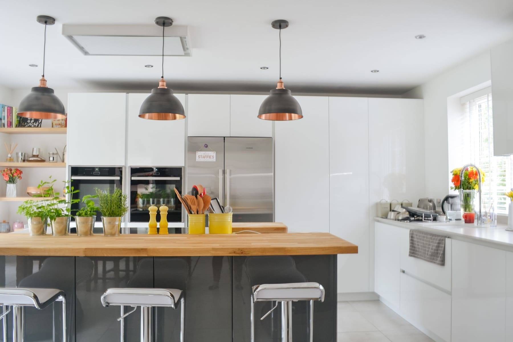 The beauty of a white kitchen is in its pristine appearance. Keeping it that way requires some care. Different door and countertop materials require a different level of care, with some lower maintenance than others, e.g. fingerprints are more obvious in white gloss than white matt, and white shaker doors with a handle are harder to clean than streamlined white handleless kitchen doors. White kitchens require: –